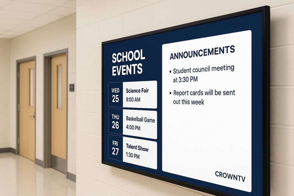 CrownTV has built a digital signage program specifically designed for the unique challenges schools and universities face. Here’s what sets it apart in the education space.