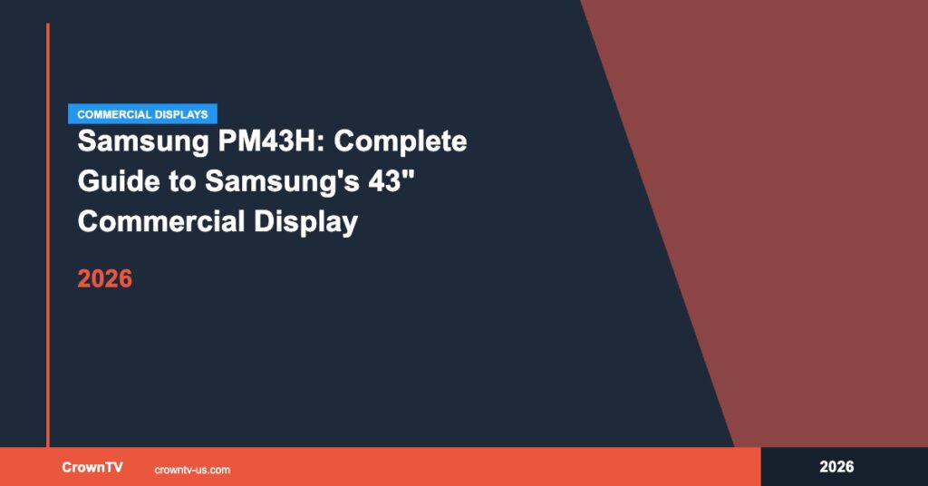 At CrownTV, we’ve helped hundreds of businesses source, install, and manage commercial displays nationwide. We know from experience that the jump from a consumer TV to a commercial-grade screen like the Samsung PM43H makes a measurable difference in reliability, manageability, and total cost of ownership. In this guide, we’ll walk you through everything you need to know, specs, features, use cases, pricing, and how to decide if the PM43H is the right fit for your next digital signage project.